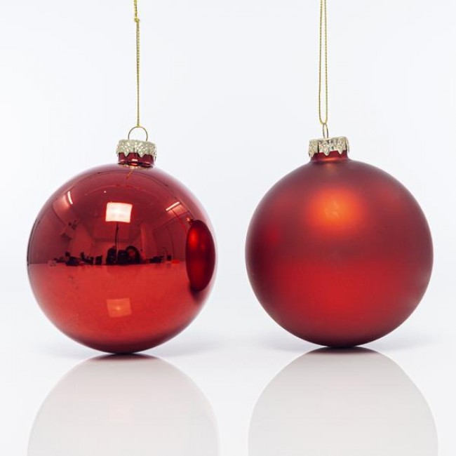 ΓΥΑΛΙΝΗ ΜΠΑΛΑ, ΚΟΚΚΙΝΗ, ΜΑΤ ΚΑΙ ΓΥΑΛΙΣΤΕΡΗ, ΣΕΤ 4 ΤΜΧ, 10cm