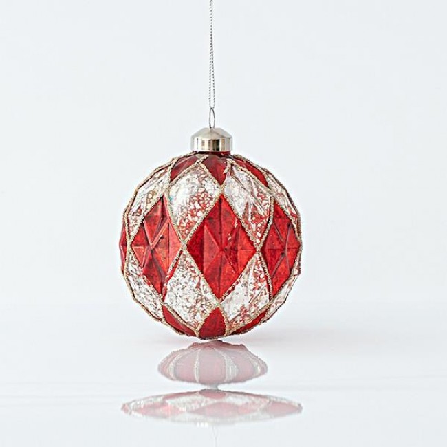 ΓΥΑΛΙΝΗ ΜΠΑΛΑ, ΚΟΚΚΙΝΗ ΚΑΙ ΑΣΗΜΙ, ΑΝΑΓΛΥΦΗ, ΜΕ GLITTER, ΣΕΤ 4ΤΜΧ, 10cm