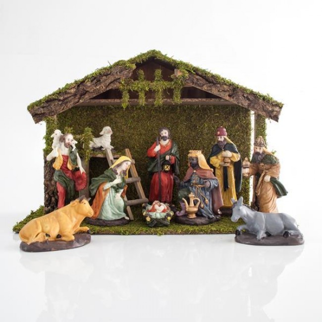 ΦΑΤΝΗ ΞΥΛΙΝΗ ΜΕ 9 ΠΟΡΣΕΛΑΝΙΝΕΣ ΦΙΓΟΥΡΕΣ, 54x22x36,5cm