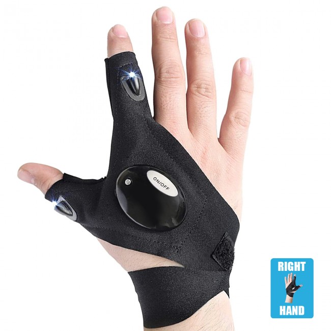 GloboStar® 79068 Γάντι Φακός με Φωτισμό LED για Δεξί Χέρι 2W με Μπαταρία CR2016 Ψυχρό Λευκό 6000K