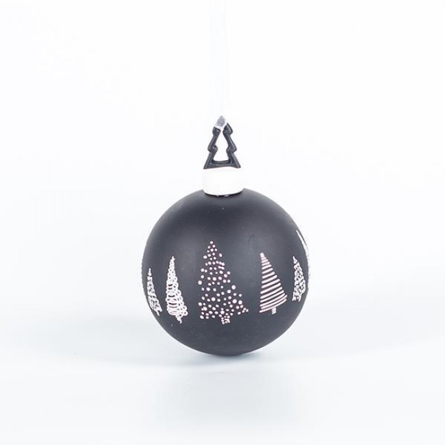 ΓΥΑΛΙΝΗ ΜΠΑΛΑ, ΜΑΥΡΗ, ΜΕ ΠΟΡΣΕΛΑΝΙΝΑ ΔΕΝΤΡΑΚΙΑ, 1ΤΜΧ, 8cm