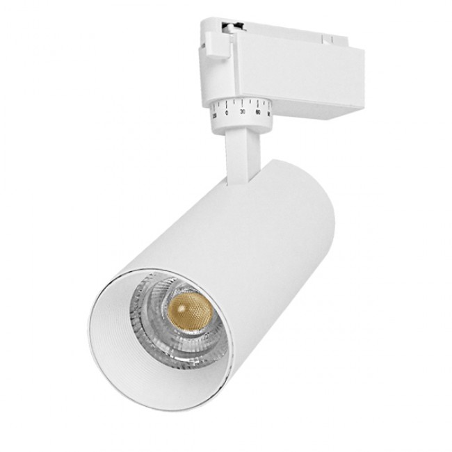 Μονοφασικό Bridgelux COB LED Λευκό Φωτιστικό Σποτ Ράγας 30W 230V 3600lm 30° Θερμό Λευκό 3000k GloboStar 93108