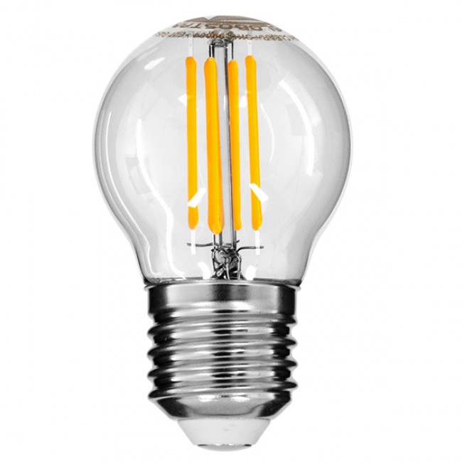 GloboStar® 99003 Λάμπα LED Long Filament E14 G45 Γλομπάκι 4W 400lm 360° AC 220-240V IP20 Φ4.5 x Υ7.5cm Θερμό Λευκό 2700K με Διάφανο Γυαλί Dimmable - 3 Χρόνια Εγγύηση