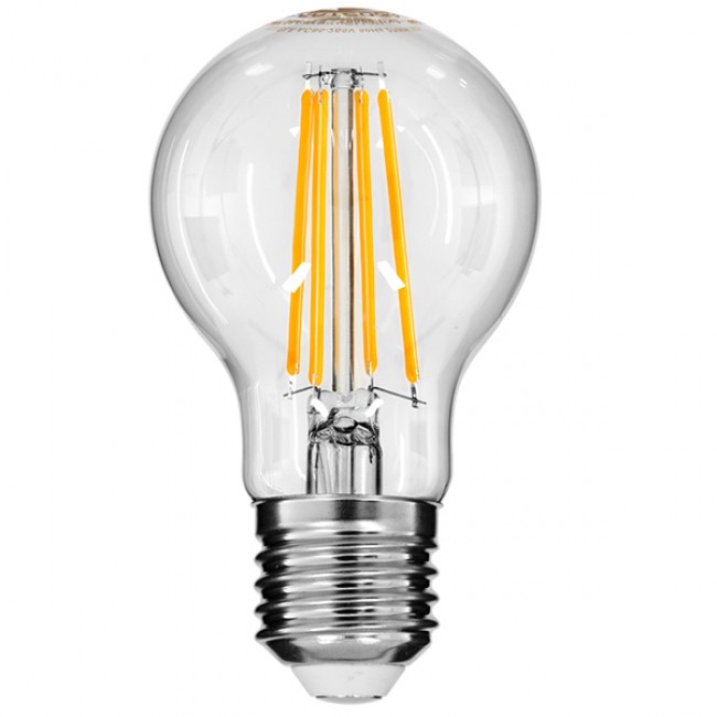 GloboStar® 99007 Λάμπα LED Long Filament E27 A60 Γλόμπος 8W 800lm 360° AC 220-240V IP20 Φ6 x Υ10.5cm Θερμό Λευκό 2700K με Διάφανο Γυαλί - Dimmable - 3 Χρόνια Εγγύηση