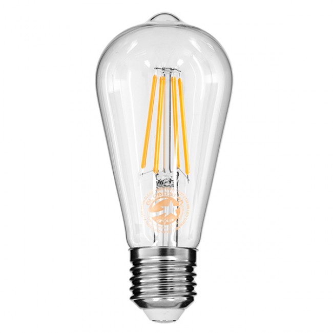 GloboStar® 99090 Λάμπα LED Long Filament E27 ST64 Αχλάδι 7W 1470lm 360° AC 220-240V IP20 Φ6.4 x Υ14.5cm Θερμό Λευκό 2700K με Διάφανο Γυαλί - Pro Series 210lm/W - A Ενεργειακή Κλάση - 3 Χρόνια Εγγύηση